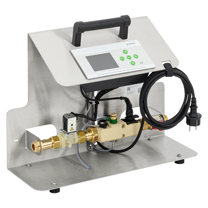 For at sikre at der altid løber optimalt vand i varmtvandskredsløbet, anbefaler Grünbeck at bruge fuldt demineraliseret vand til den første påfyldning. Det kendte mixed bed-filter desaliQ:MB9 er ideelt til første fyldning. Takket være det nye desaliQ Basis-påfyldningsmodul er dette så komfortabelt som aldrig før! Det bruges ikke kun til at overvåge og styre påfyldningsprocessen optimalt for at sikre en konstant fremragende kvalitet af varmevandet, desaliQ-Basis-påfyldningsmodulet tænker også selv! Den intelligente styring slår automatisk påfyldningsprocessen fra, når filtrets kapacitet er opbrugt.